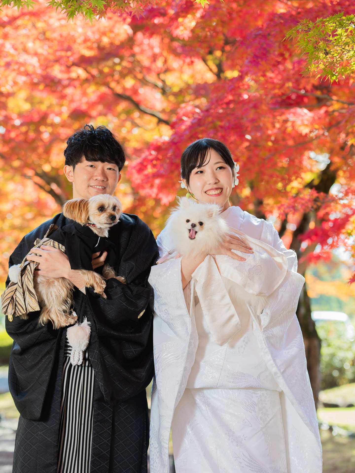 実はわんちゃん達も袴と白無垢を着てるんです!