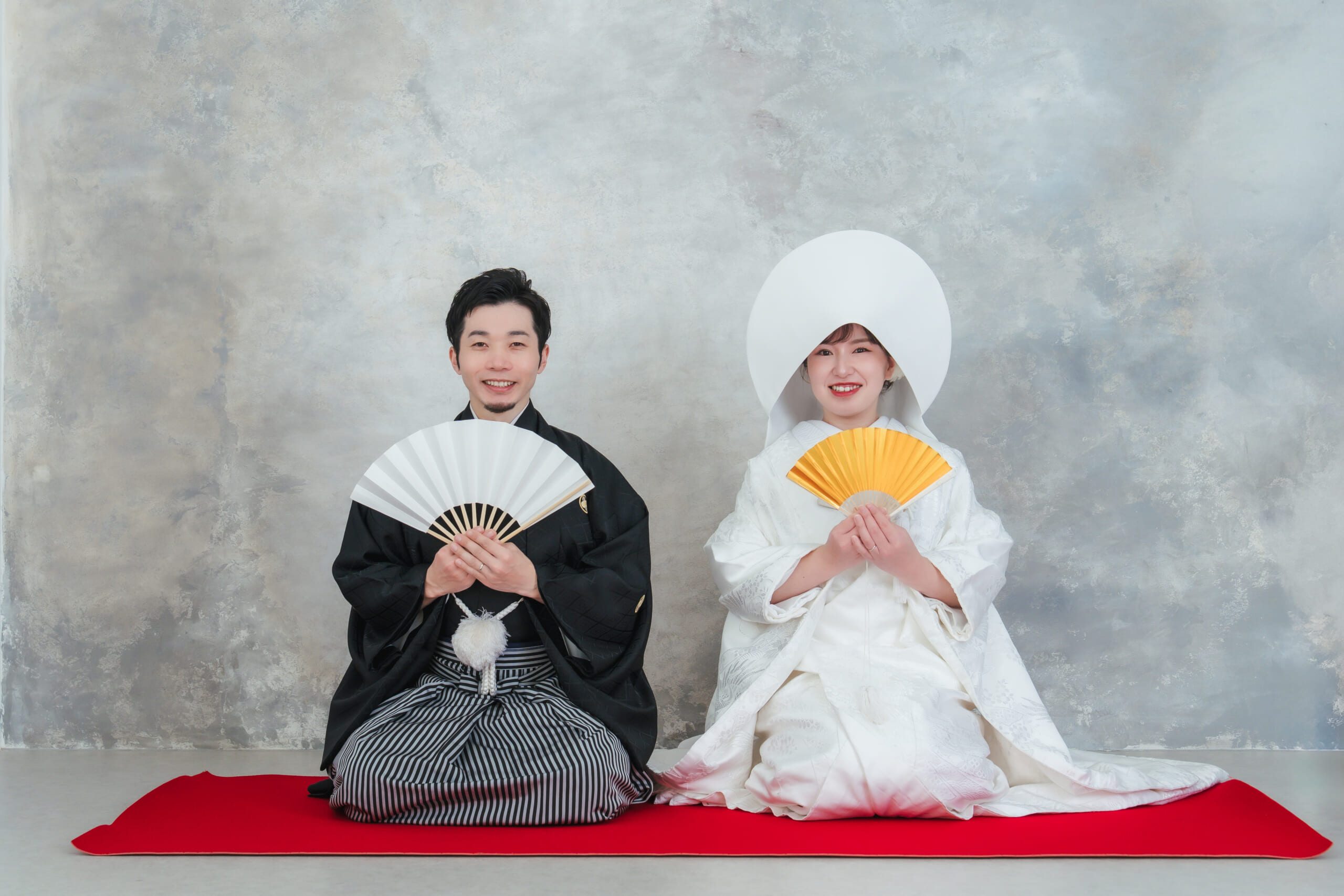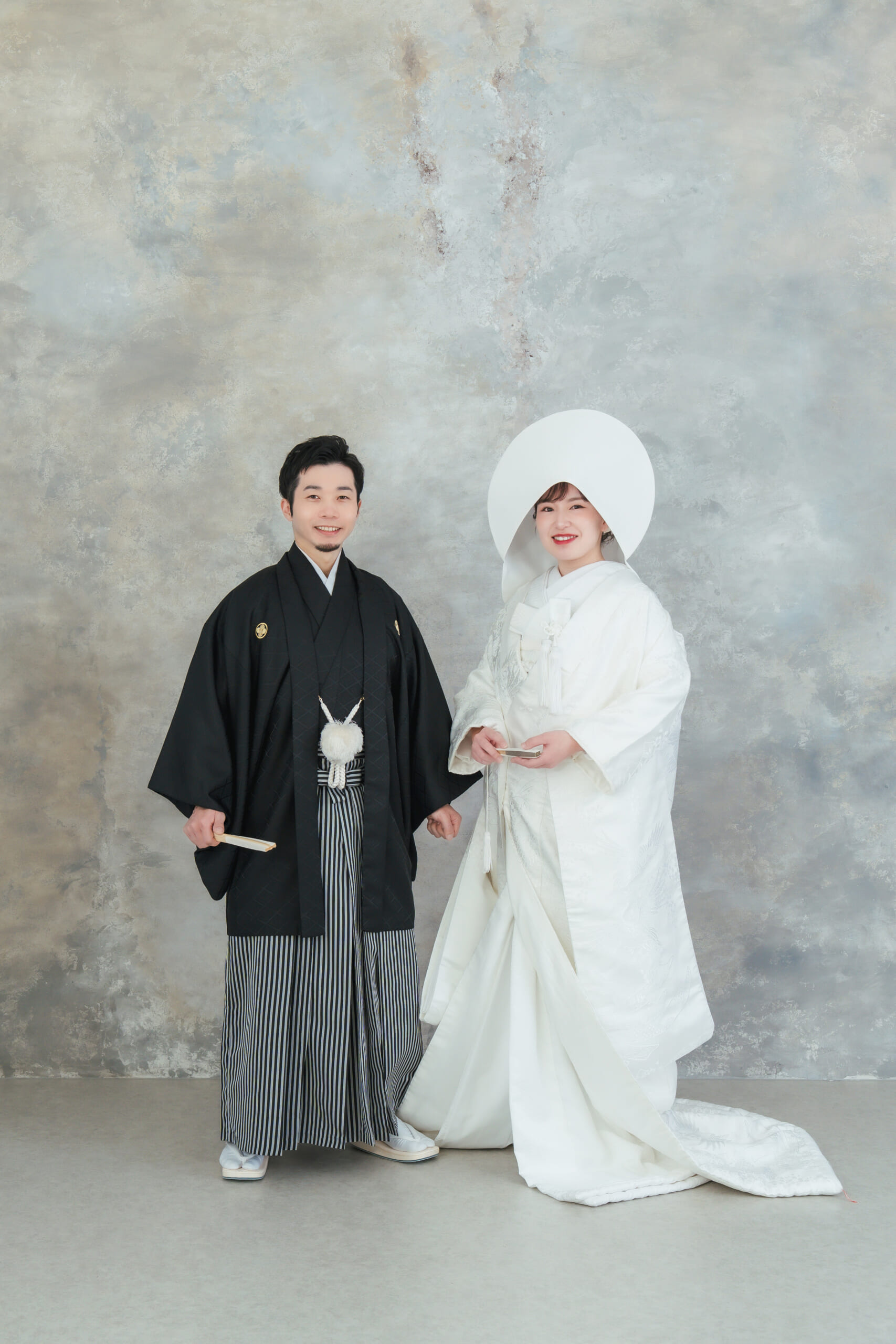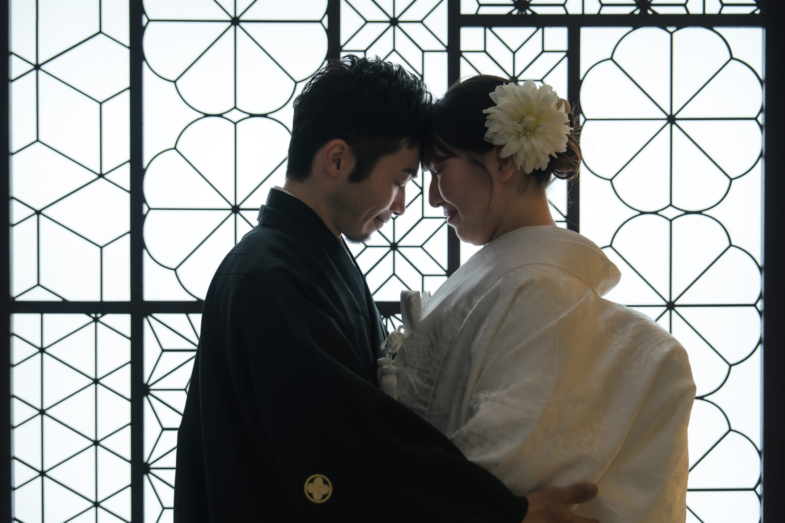 - ご新郎様は黒の紋付き袴。王道の和の結婚式スタイルでのお二人です。