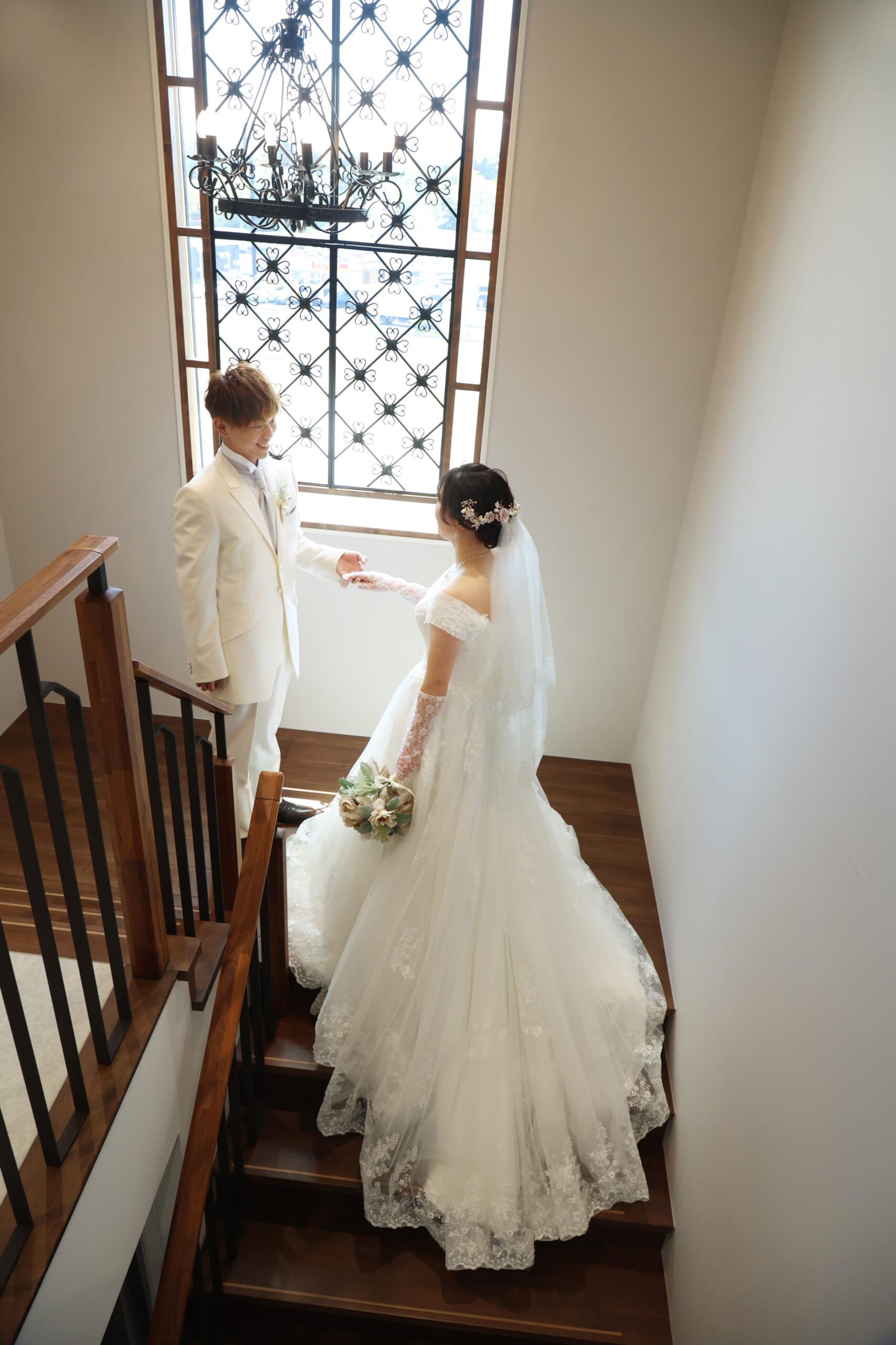 - 階段でのショットはお二人だけでシックな雰囲気で撮影を行いました。