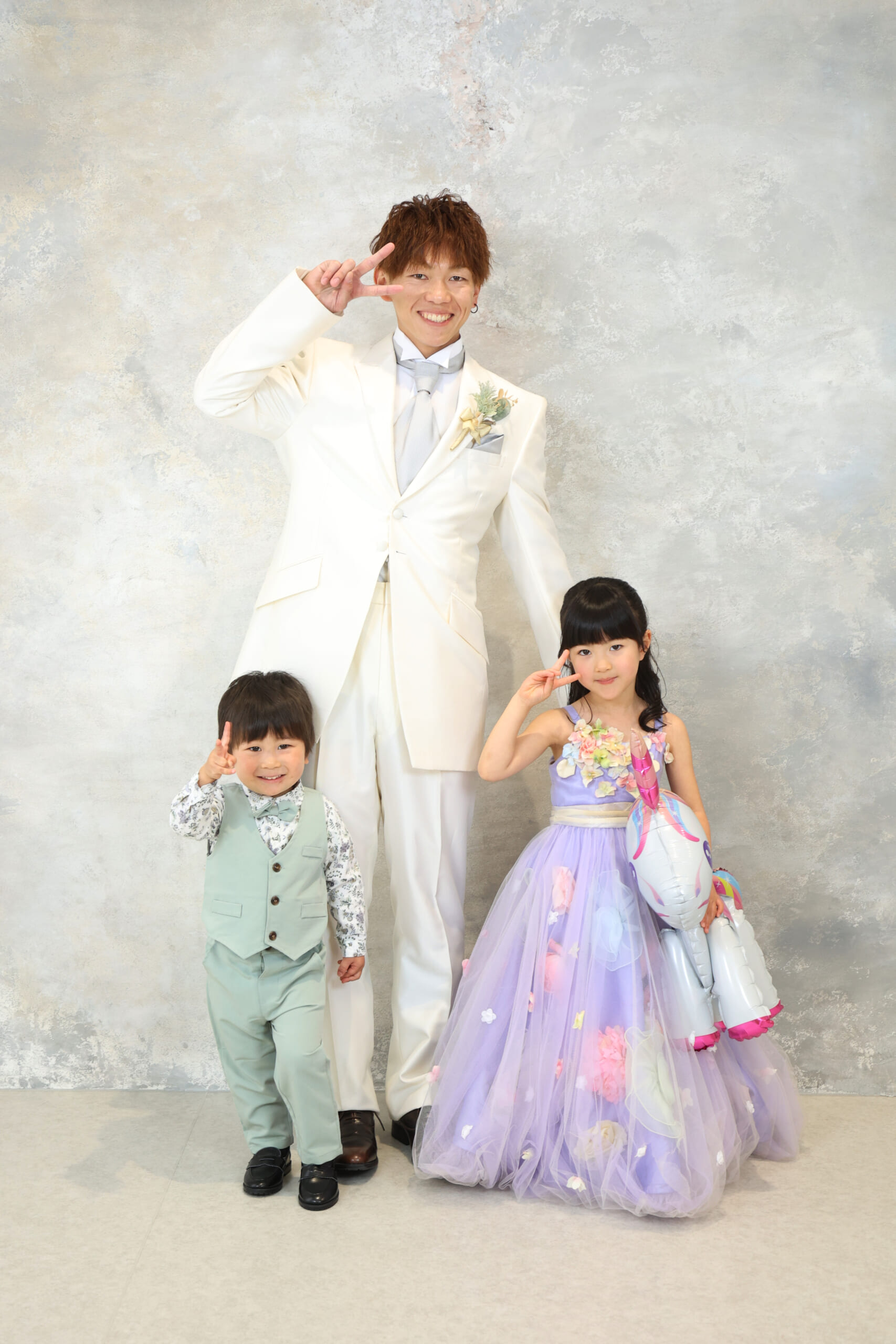 - ご新婦様のお仕度を待つ間。支度が完了したご新郎様とお子様お二人の撮影からスタートしました。