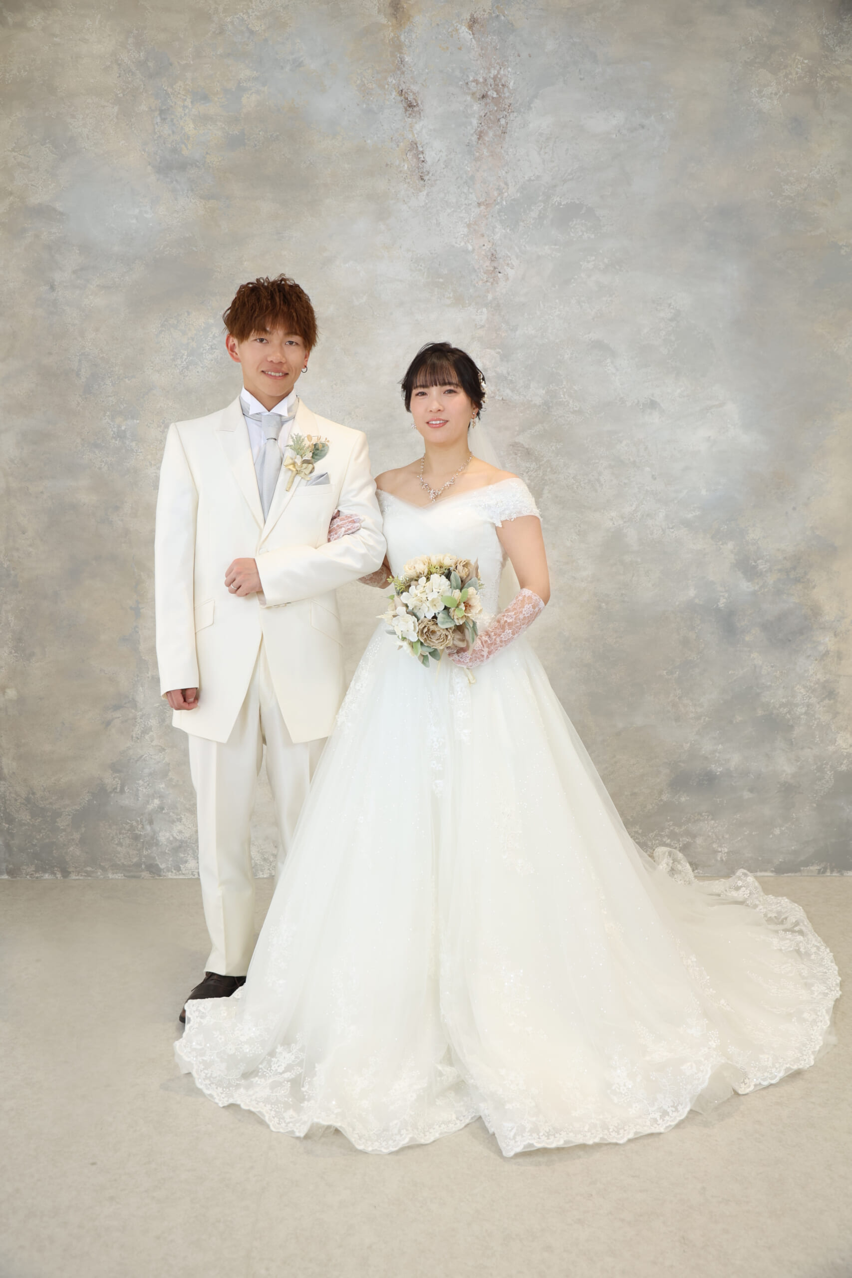 - ご新婦様のお仕度が完了したので、お二人の基本ポーズの撮影を。