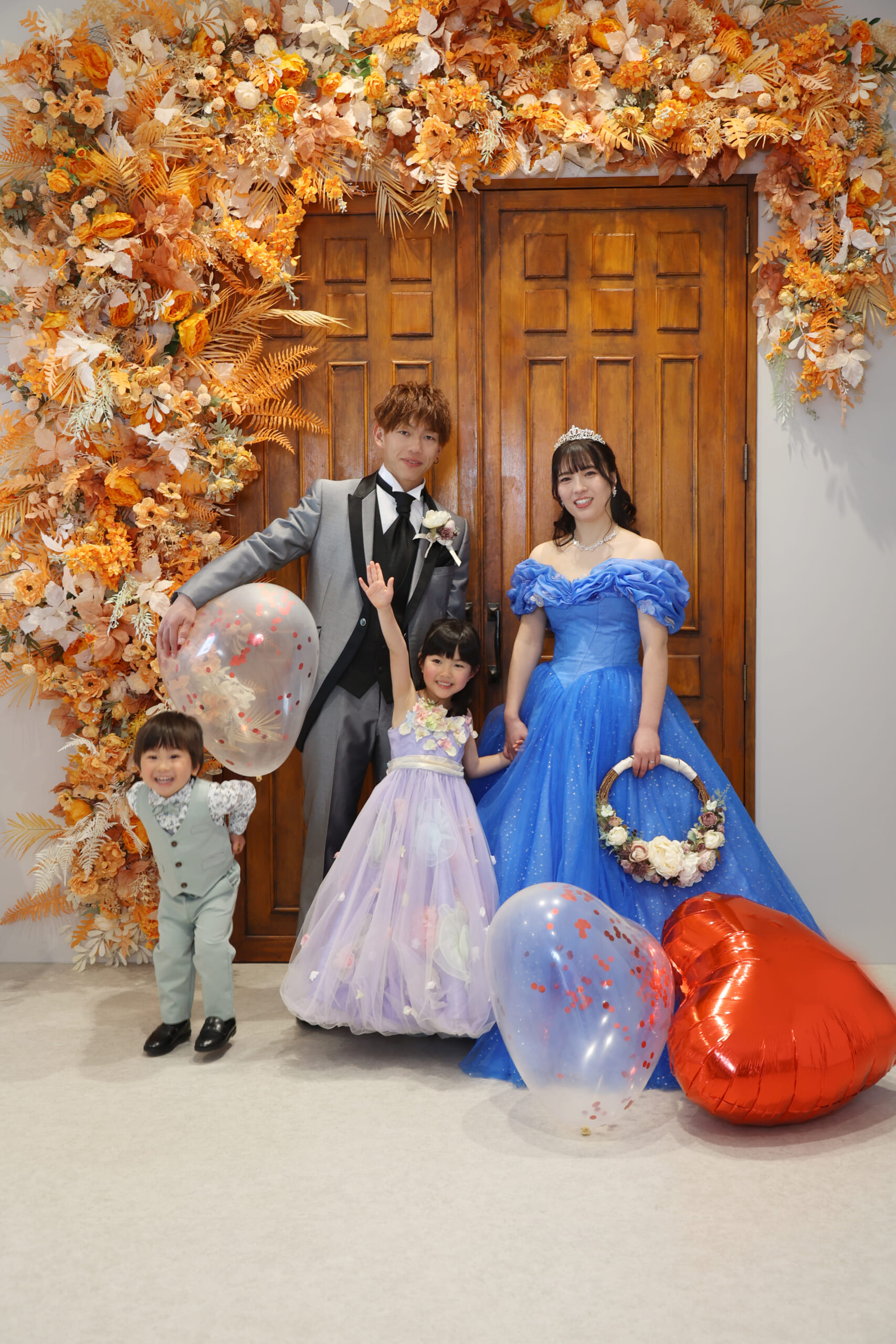 - 最後まで衣装を脱ぐことなく、元気だったお子様お二人。最後は大きなバルーンを持ったり飛ばしたりして、賑やかに楽しく撮影が終了いたしました。