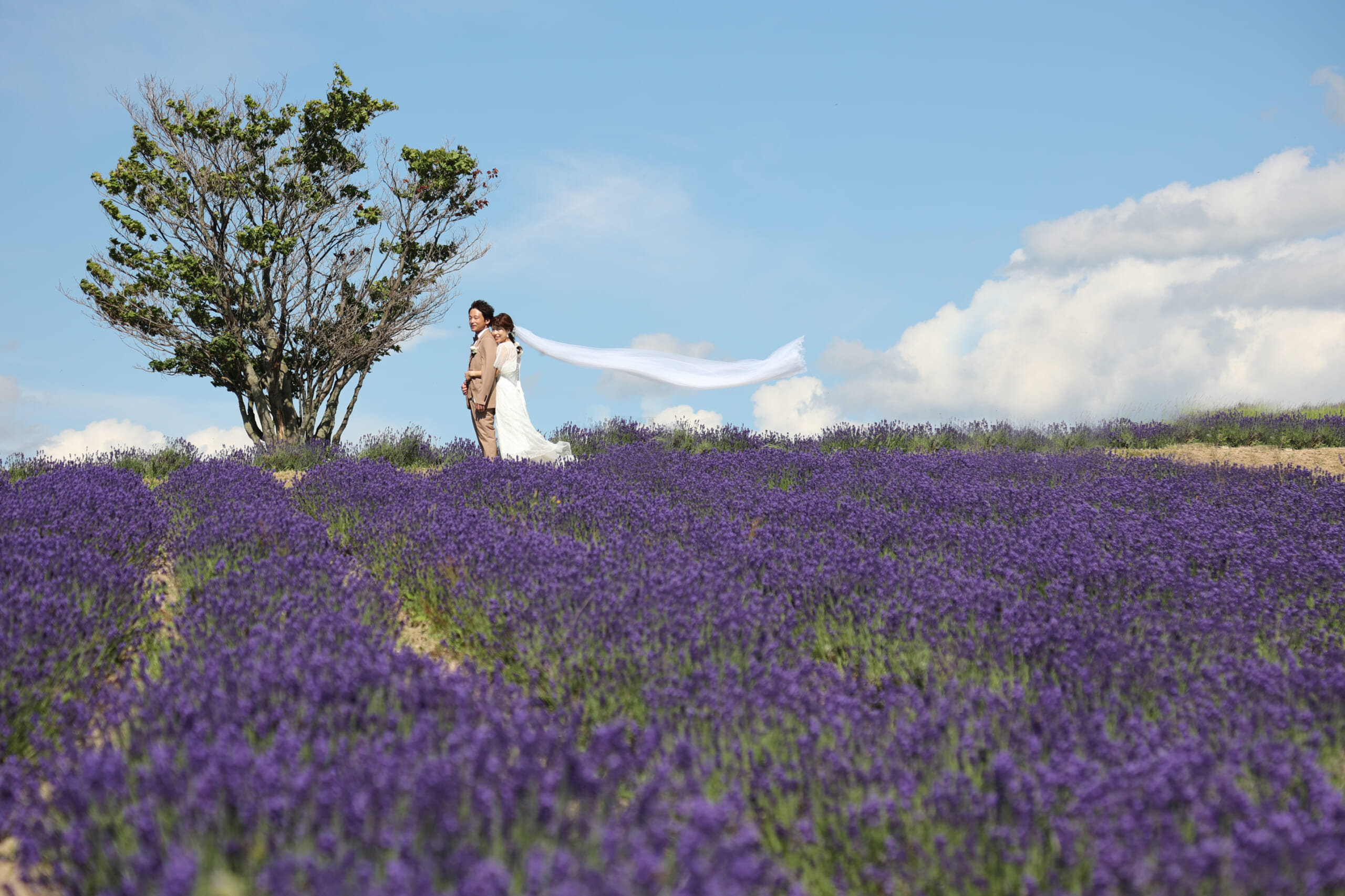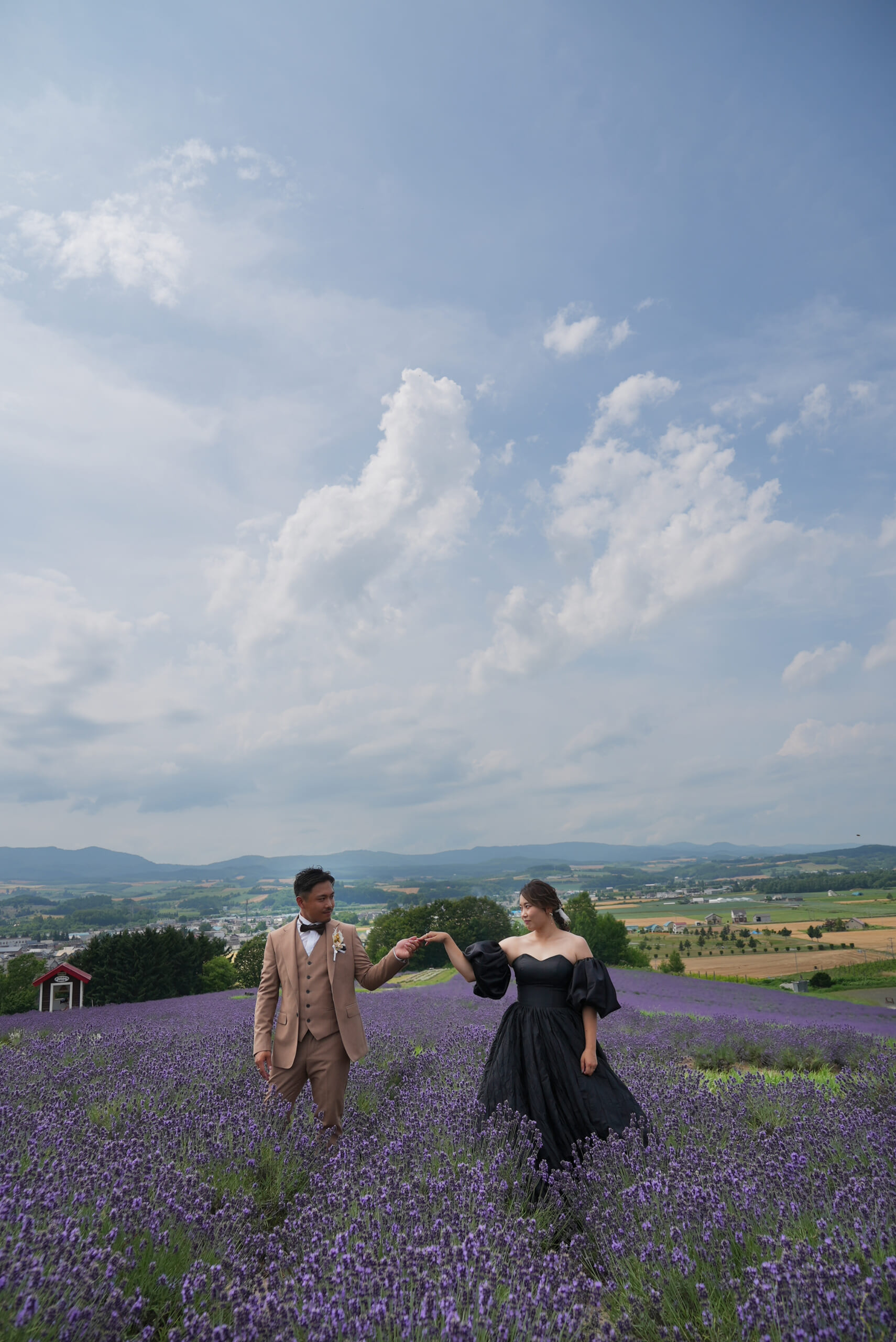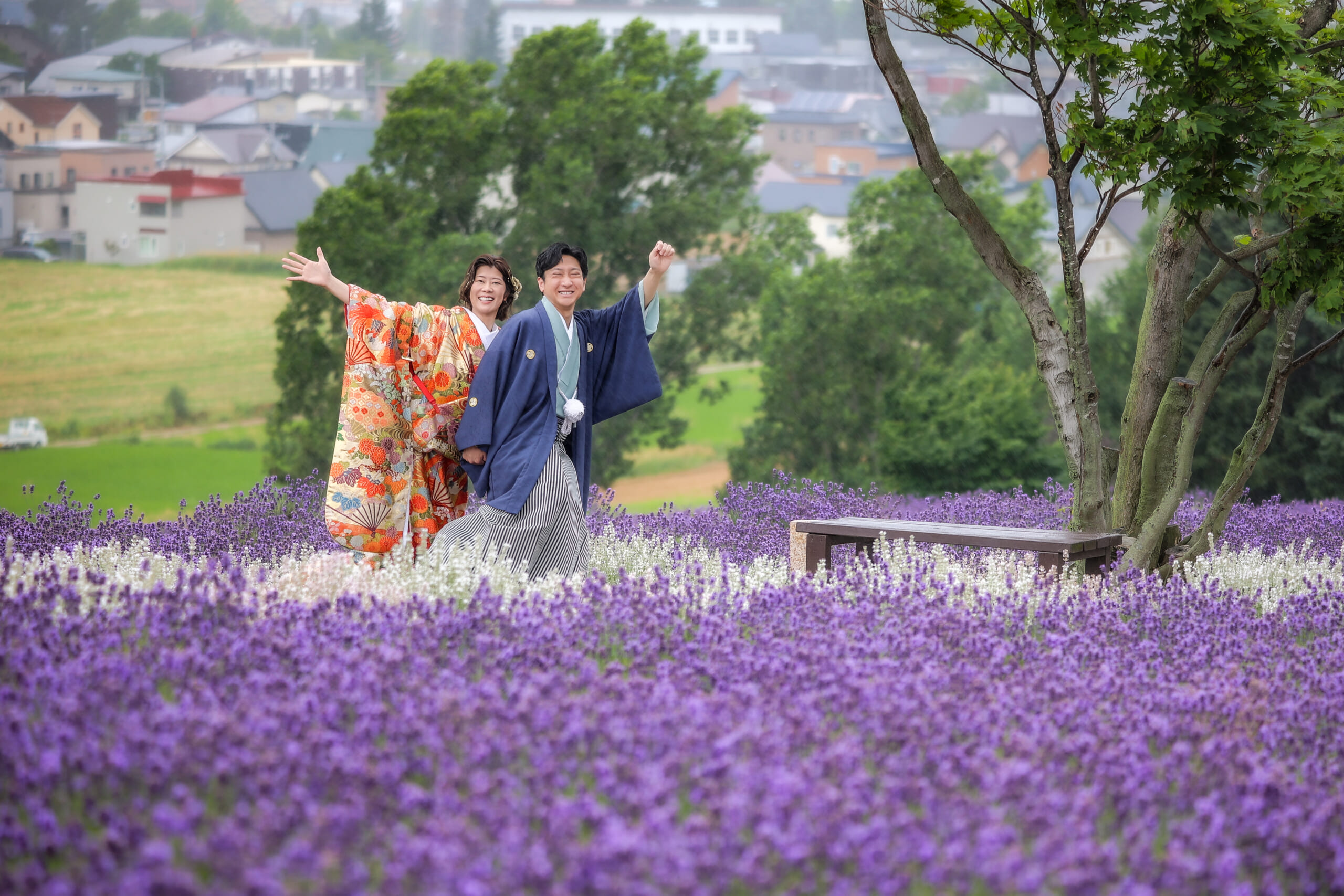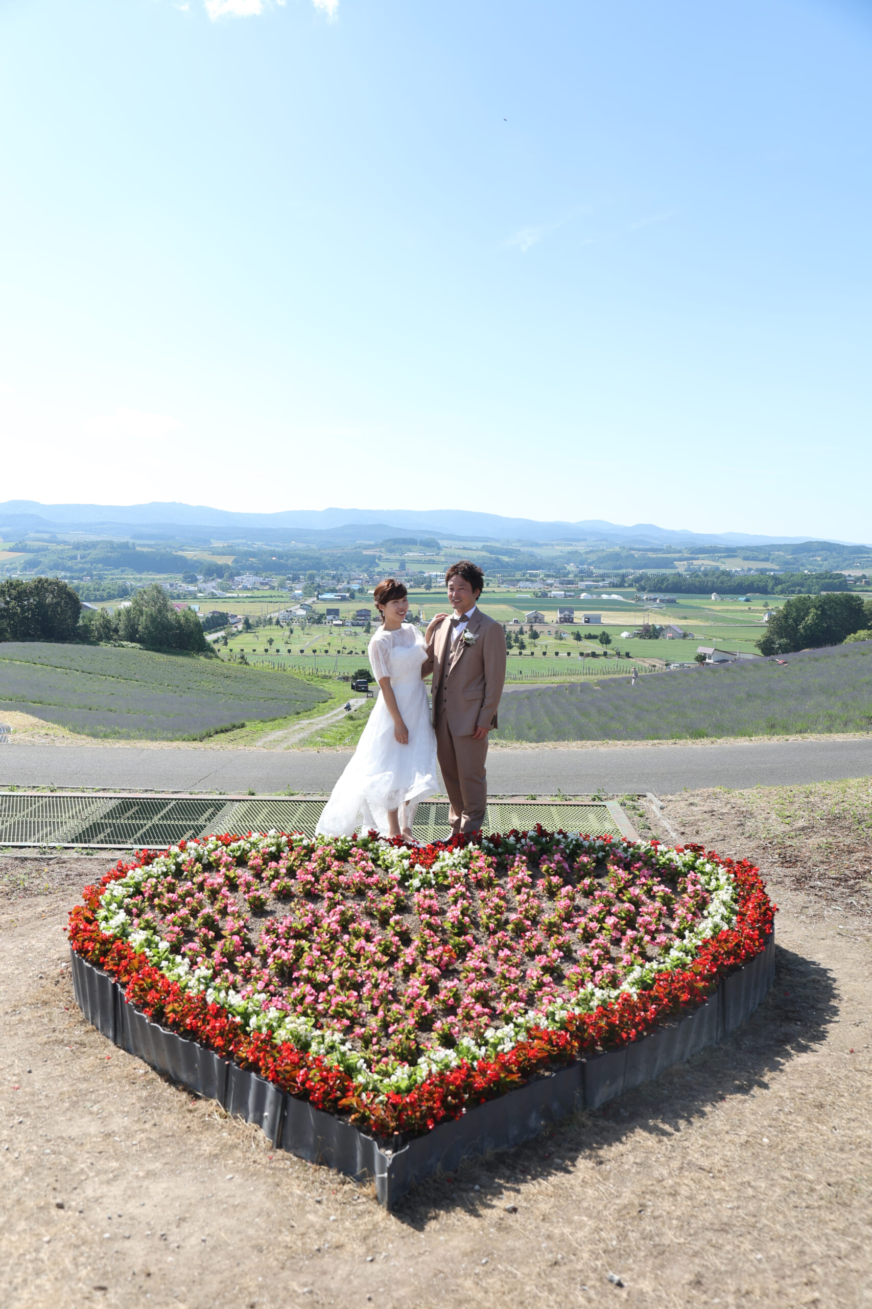 上富良野町の日の出公園では北海道の街並みを見下ろしながら、ラベンダーの花と一緒に撮影することができます。