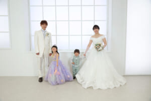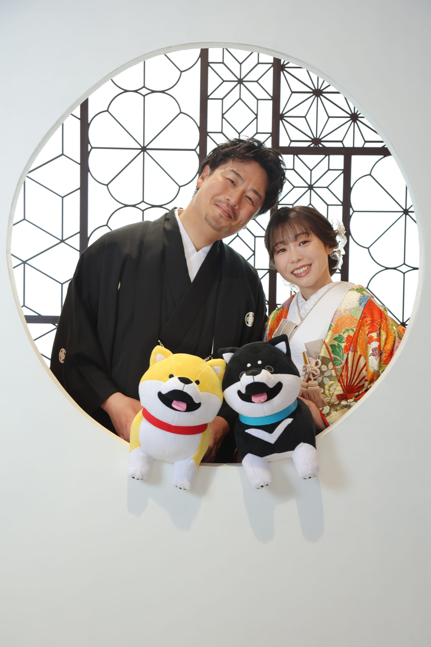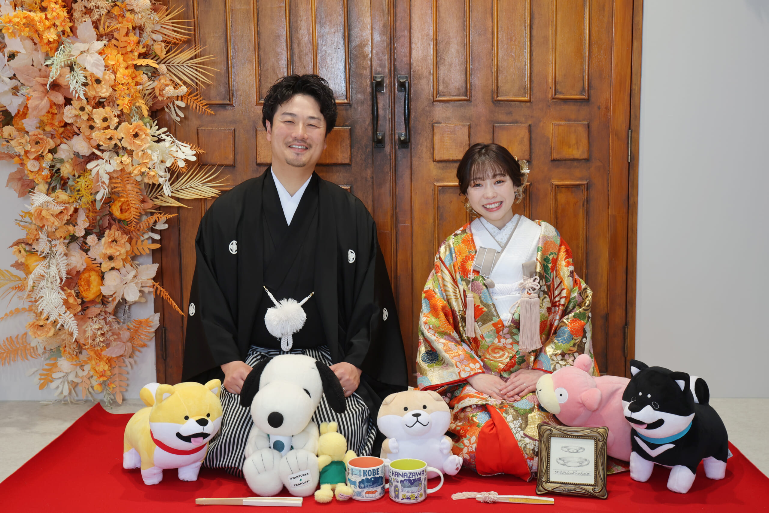 - 旅行好きなお二人。旅の思い出のみんなに囲まれて和装撮影は終了となりました。