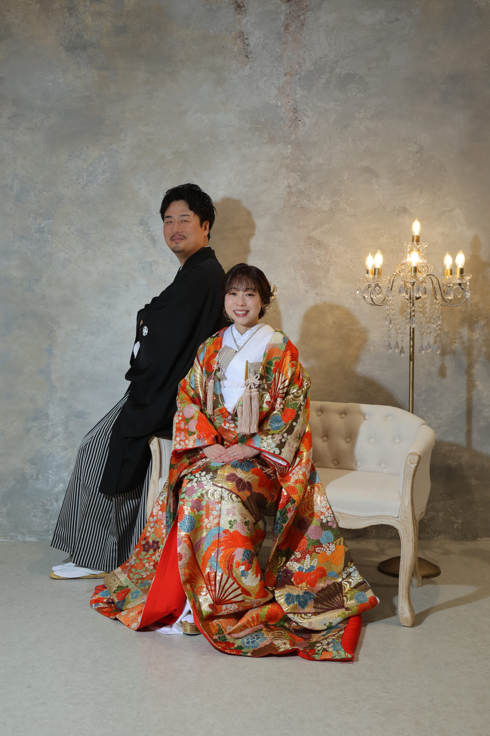 - 紋付袴と色打掛で撮影スタートしました。ご両親とも一緒に撮影も行いました。