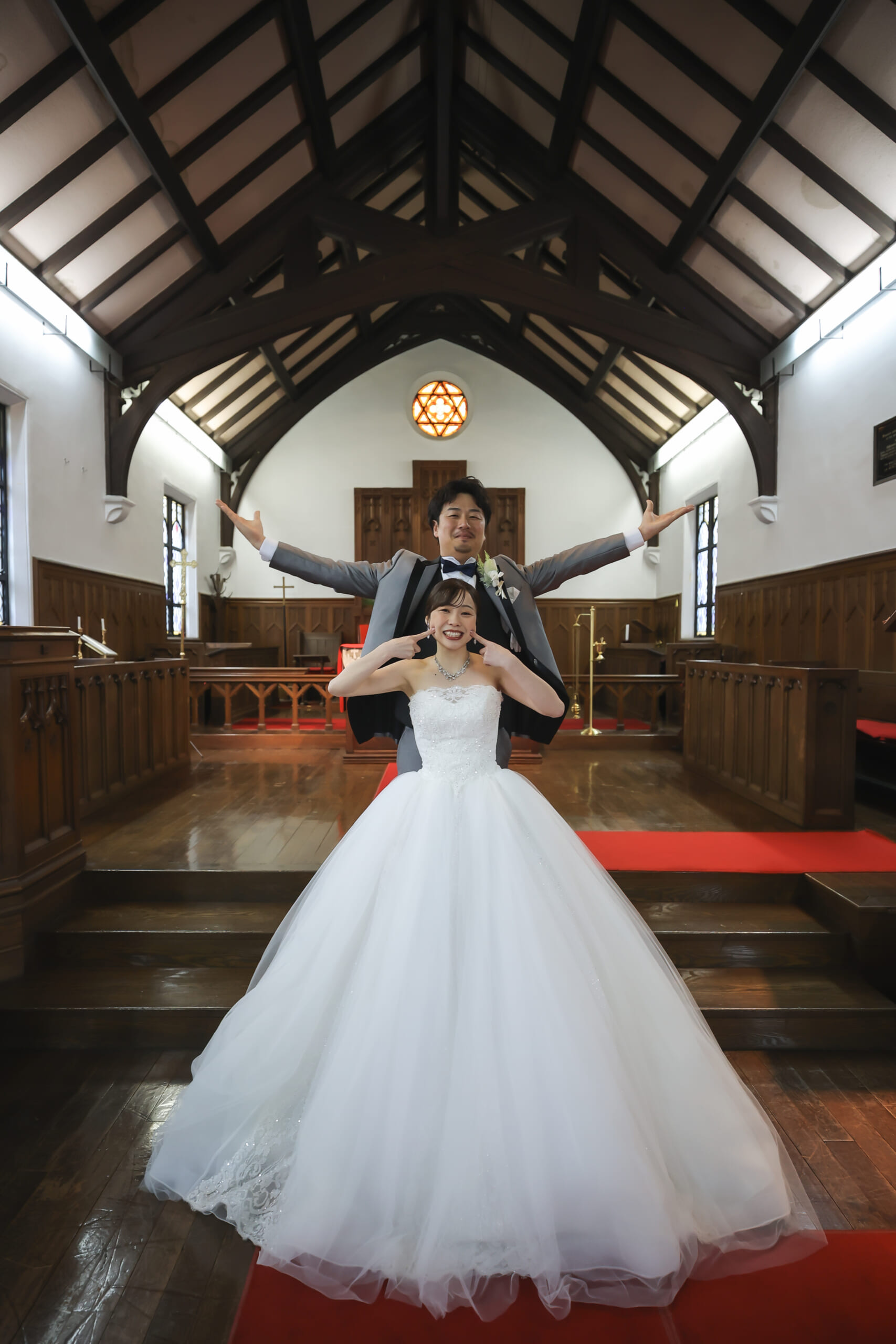 - 歴史ある教会で、しっとりと大人の雰囲気をまとった一枚となりました。