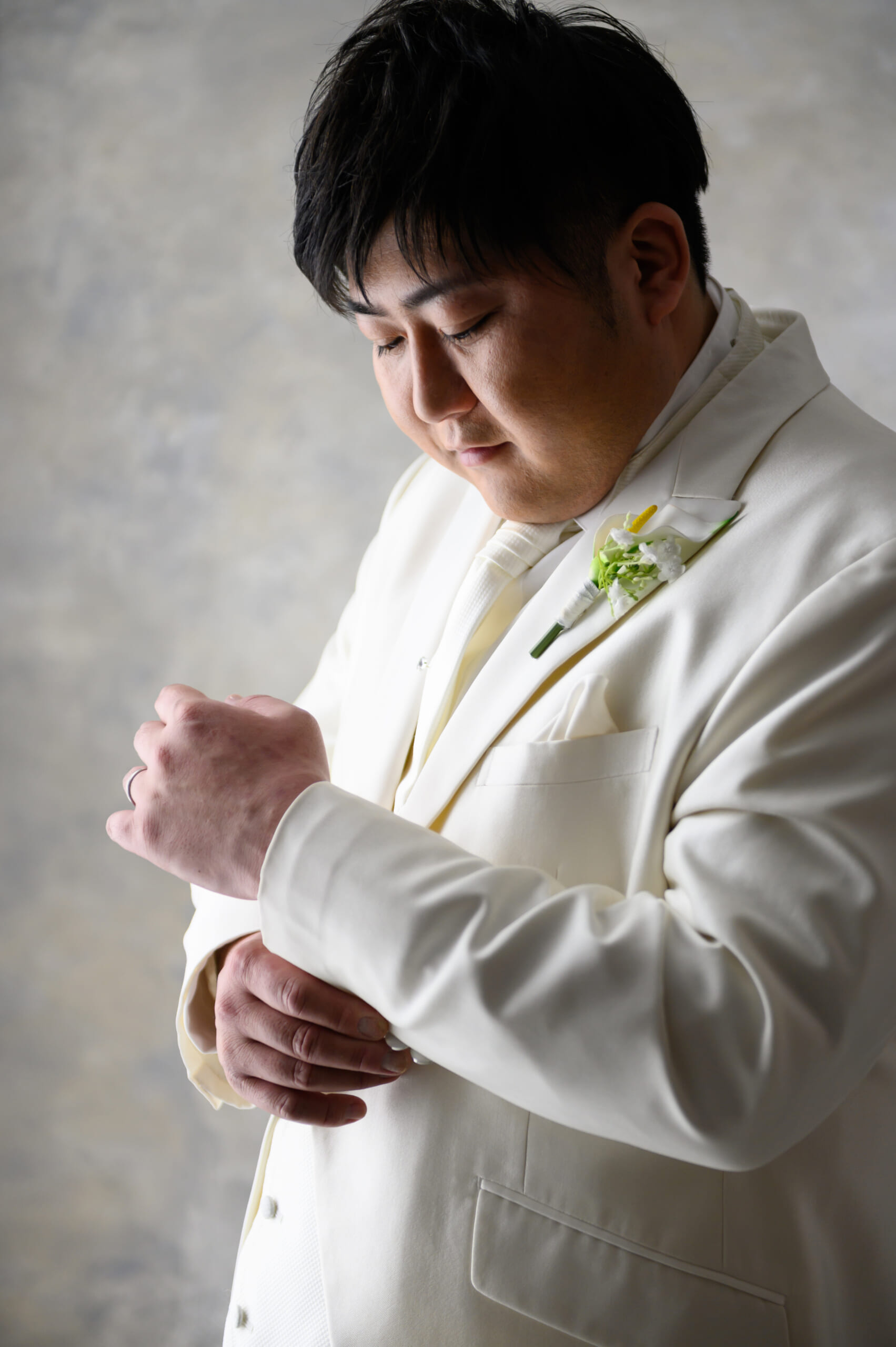 - ご新郎様のソロショットでは、陰影を強調して撮影を行いました。
