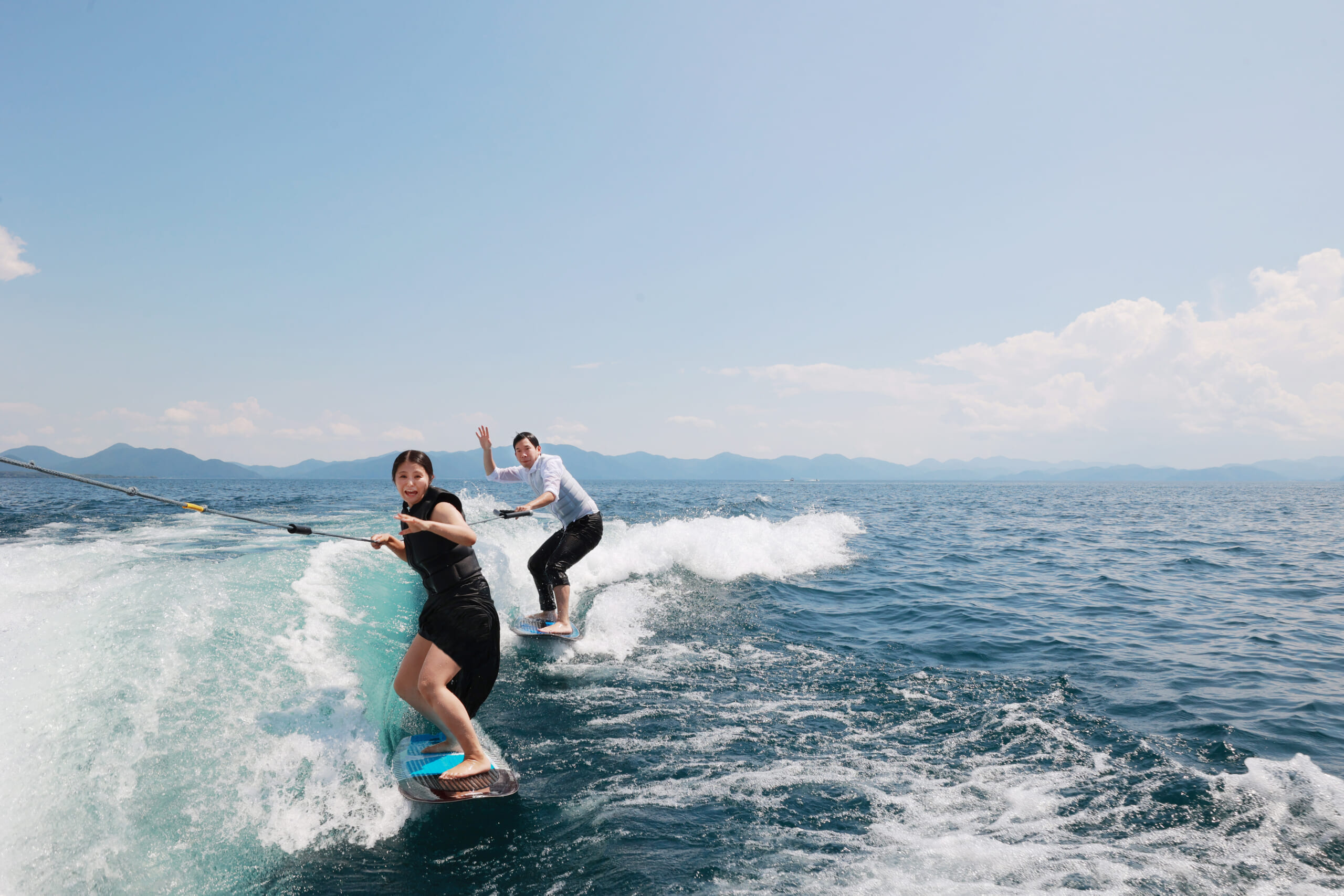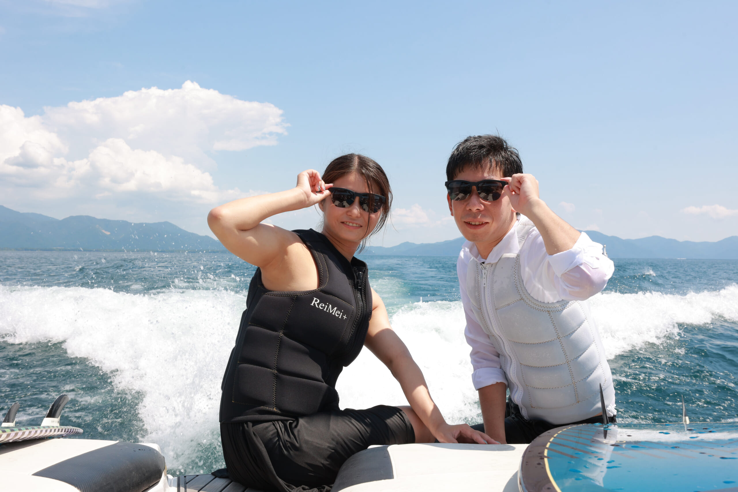 - 今回の目的!ウェイクサーフィンでの撮影です。いざ!出発!の瞬間の一枚。