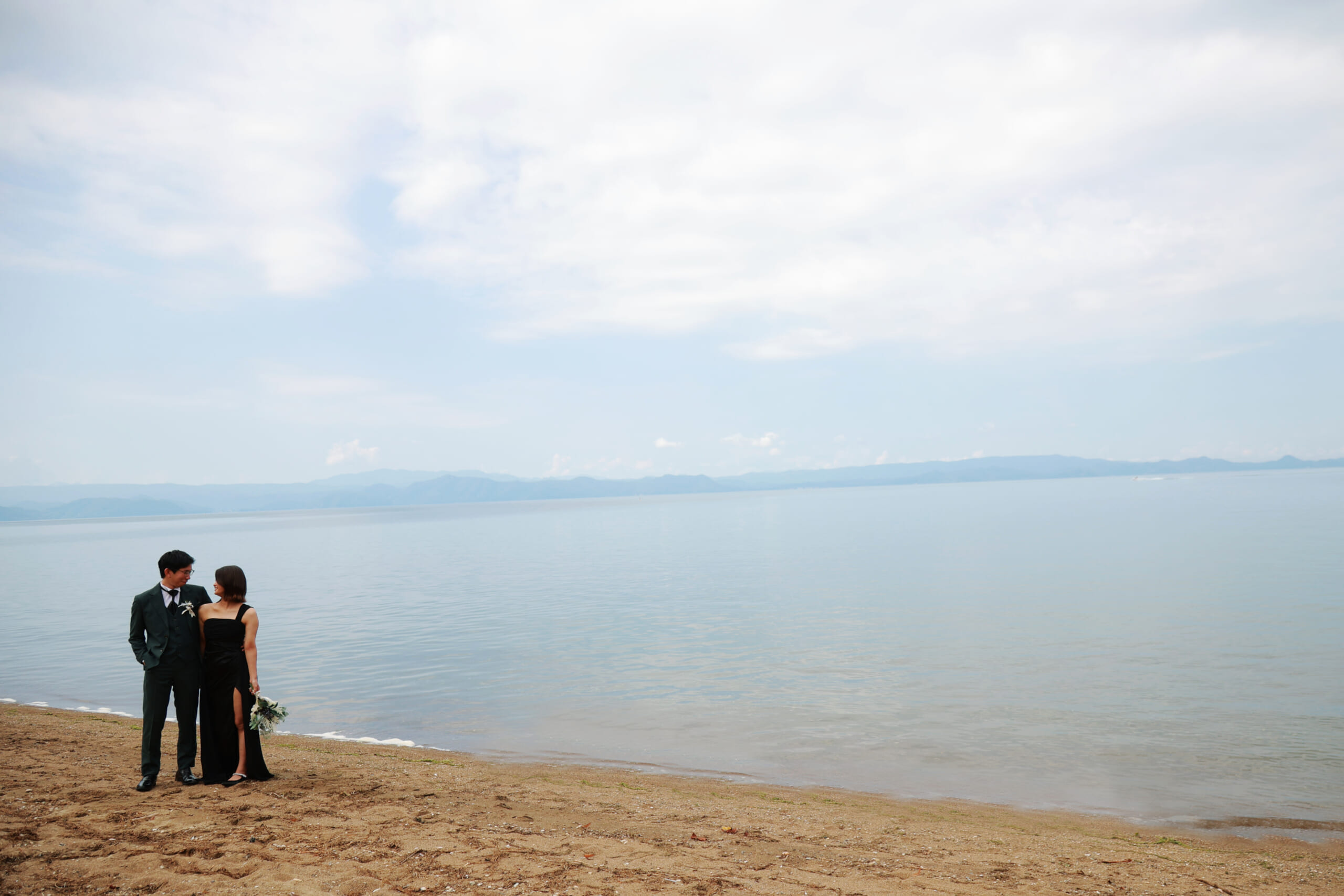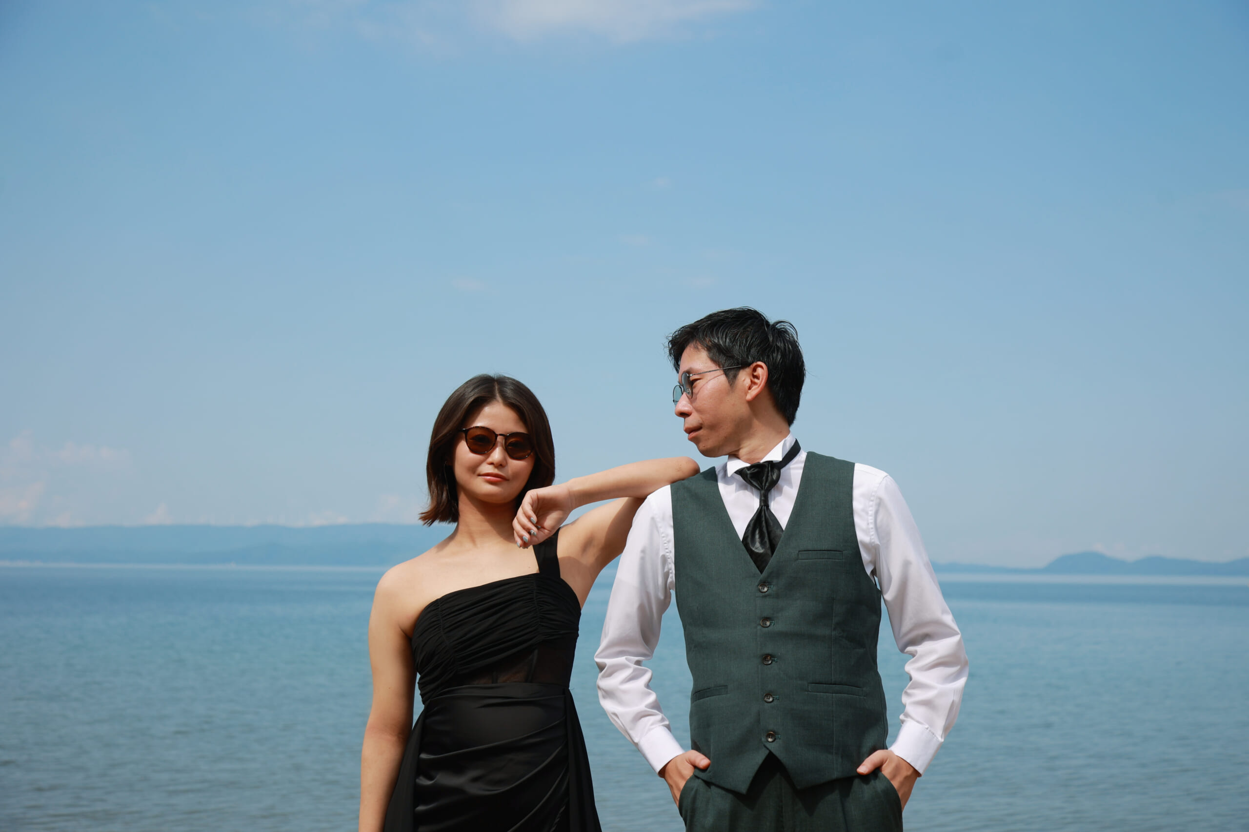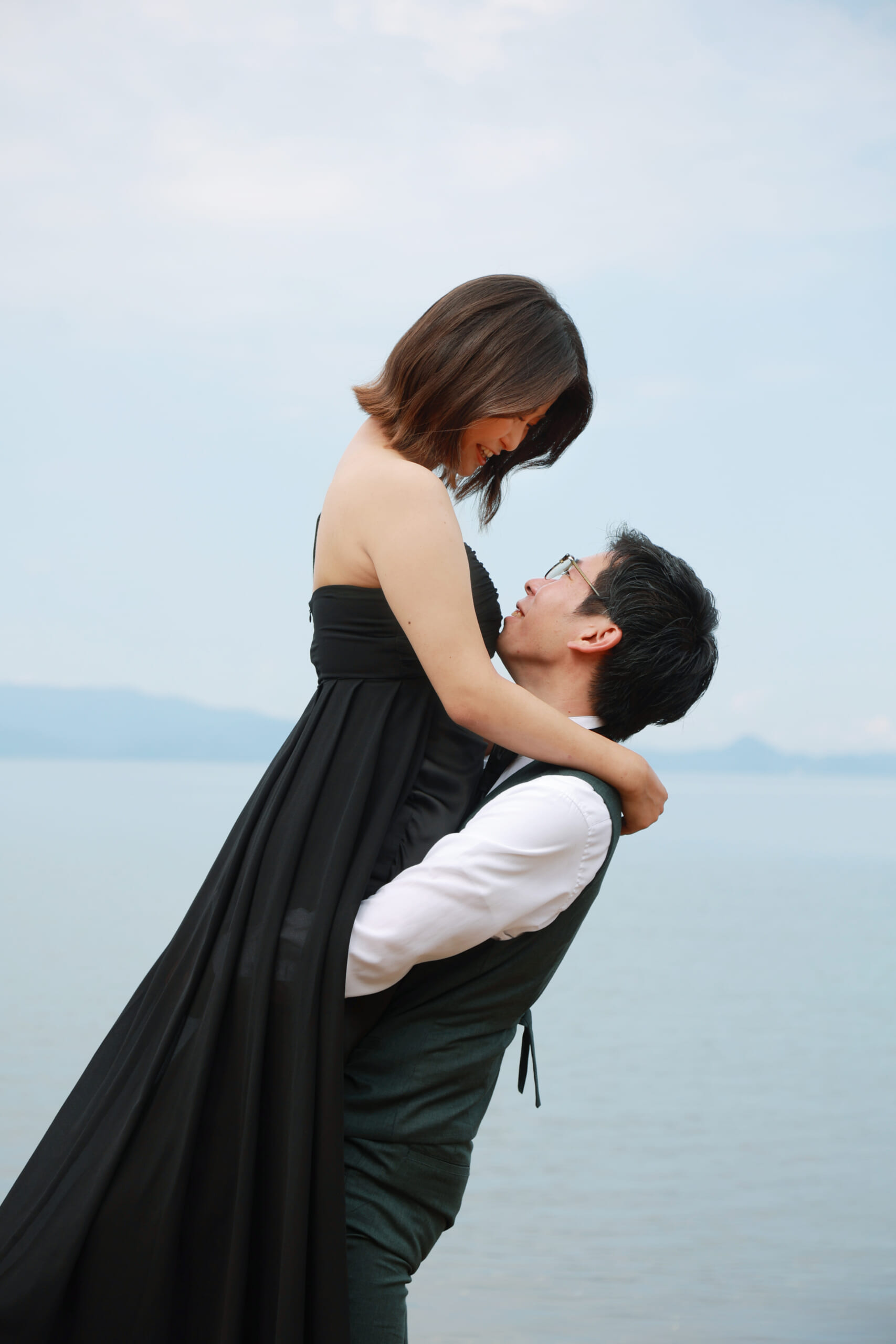- 猪苗代湖を背景に抱っこポーズでの一枚。ブルーとブラックのコントラストがすてきでした。