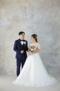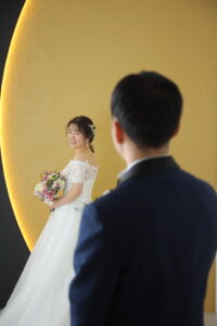 - 新婦様が仕上がったら、まず最初は2人で基本のポージングから