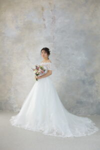 - 表情がほぐれてきたところで、新婦様お一人での撮影も
