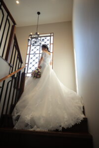 - とても天候に恵まれた日だったので、窓から差し込む日差しと階段を利用してのバックショット