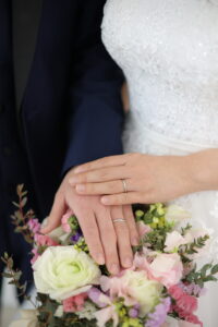 - サプライズのブーケの上で結婚指輪のアップも撮影しました