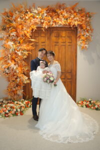 - 最後は新郎様にお子様を抱っこしていただき、立ち姿の三人を収めました