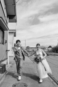- モノクロの世界に映える、ふたりの笑顔とステップ。