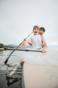 - ウェディング撮影で湖にダイブ出来るなんて素敵でしょ