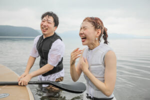 - 笑い声が湖に響く、まるで青春の1ページ。 おんぶされても心はふたりで前を向いて。