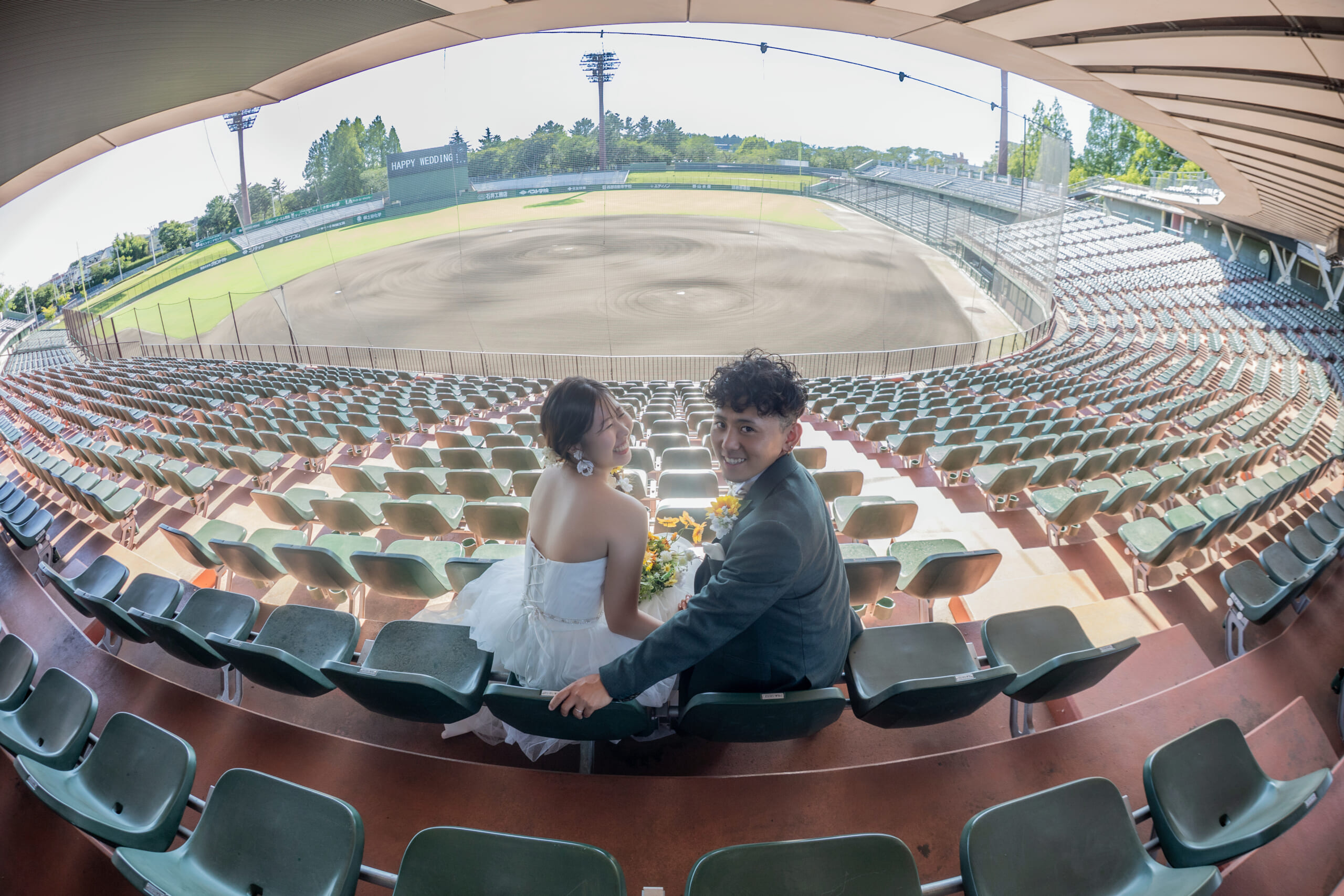 - スコアボードには “HAPPY WEDDING” の文字。 勝ち負けより大切な、この笑顔。 今日のヒーローインタビューは、ふたりです