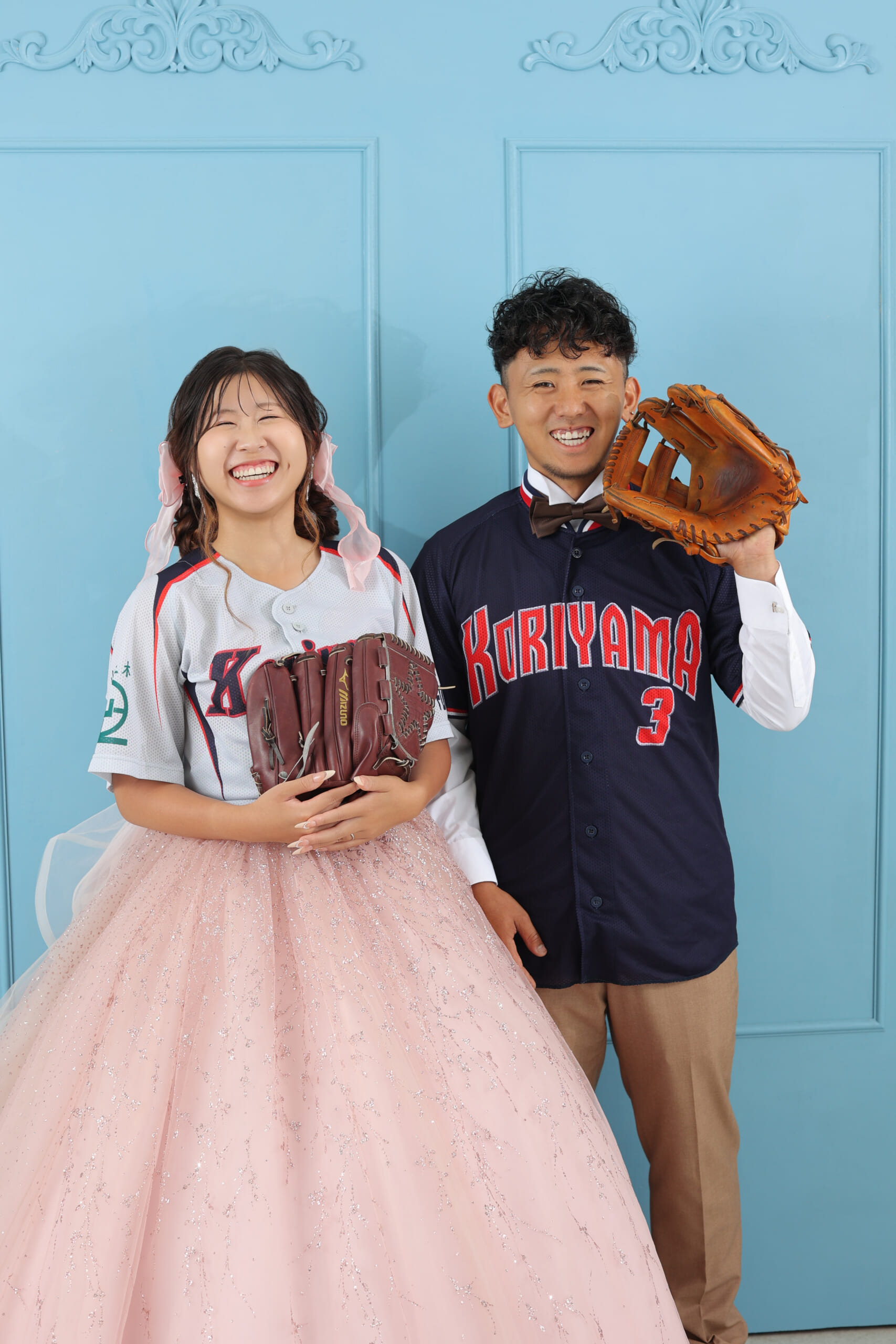 - ユニフォームにドレス、グローブにブーケ。 どんな組み合わせも、ふたりが着れば息ぴったりバッテリー。 笑顔もポーズも全力プレーで、 今日もハートにホームラン