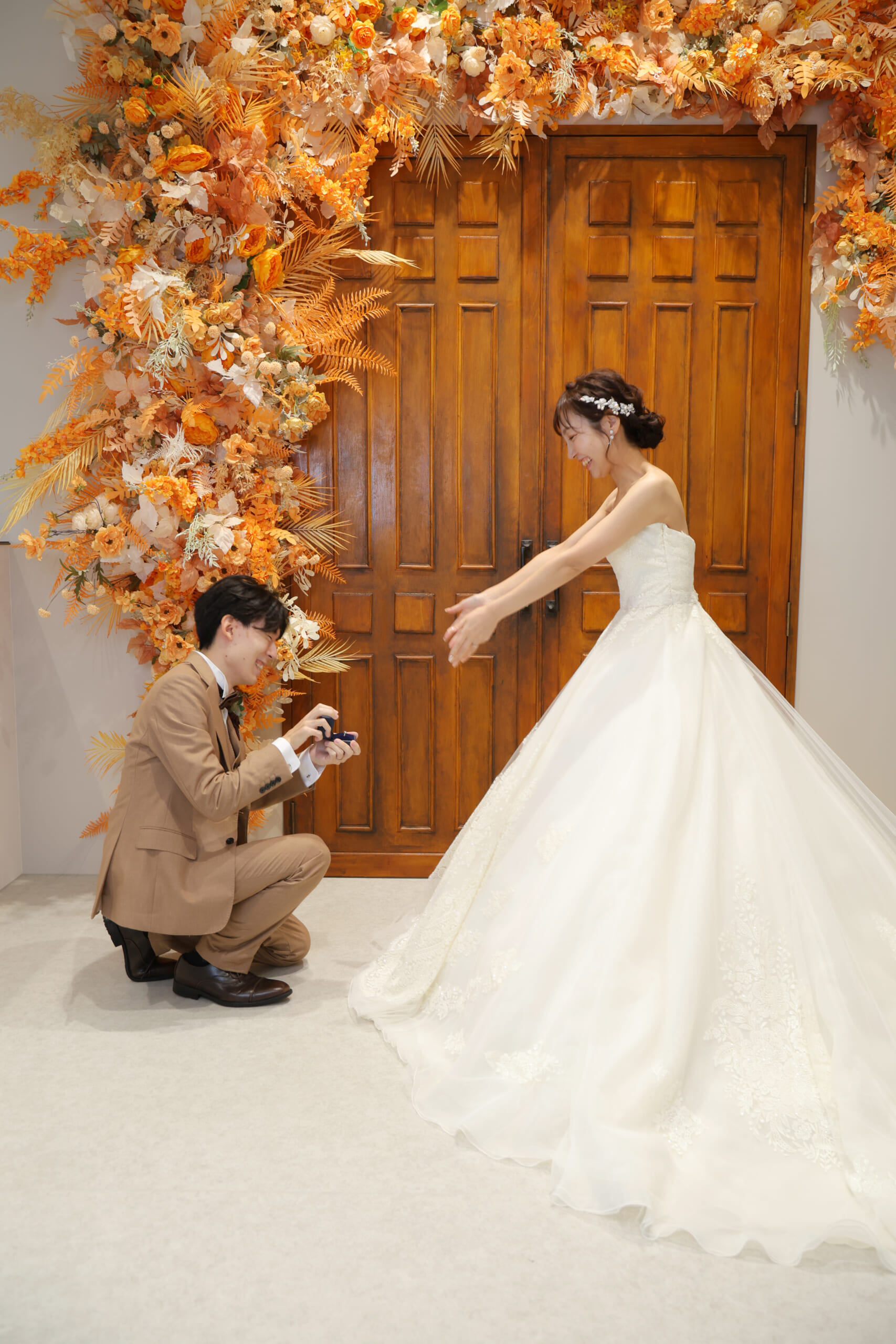 リングケースを持ってきてもらったので、プロポーズシーンを再現していただきました。